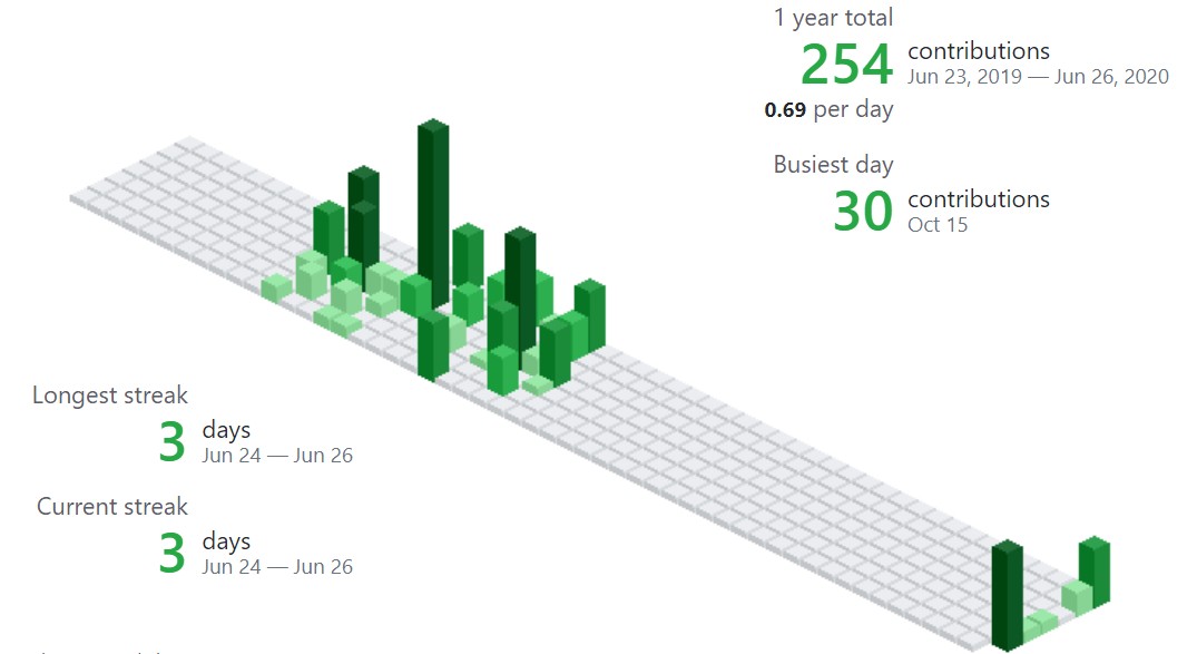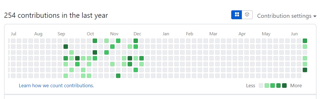 깃허브를 하다 보면 어떤 날은 특별한걸 하지도 않은 것 같은데 contribution 수가 많고(진한 초록색) 또 어떤 날은 깃허브를 붙잡고 몇 시간을 썼는데도 contribution이 없거나 연한 초록색으로 남아 있는 경우가 있다.