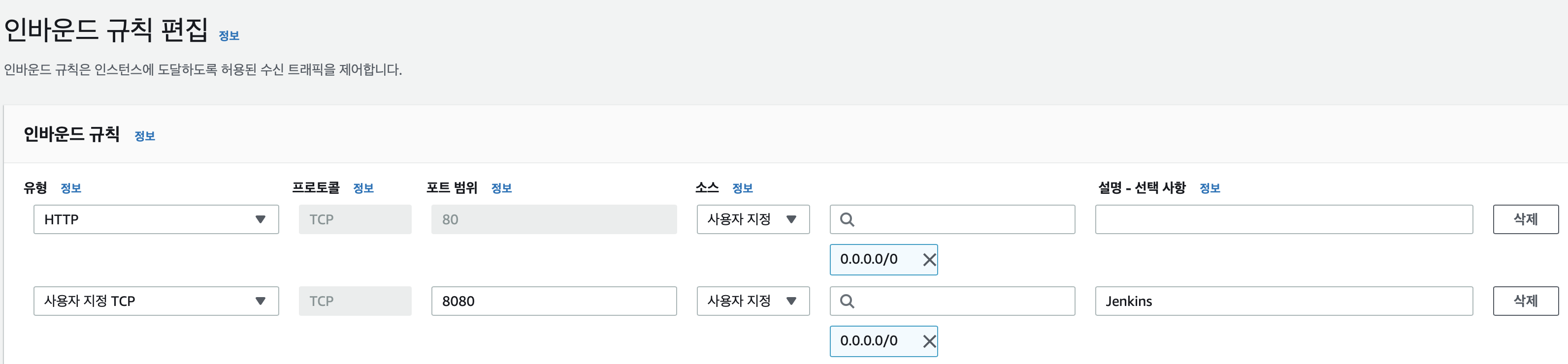 - Jenkins를 위한 8080 port를 다음과 같이 열어준다.
