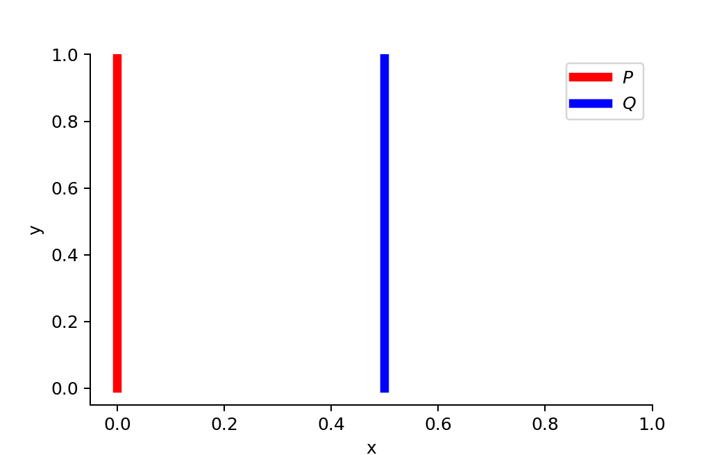 - 그렇다면 아래처럼 분포 P, Q의 support가 전혀 겹치지 않는 상황은 어떻게 될까요?