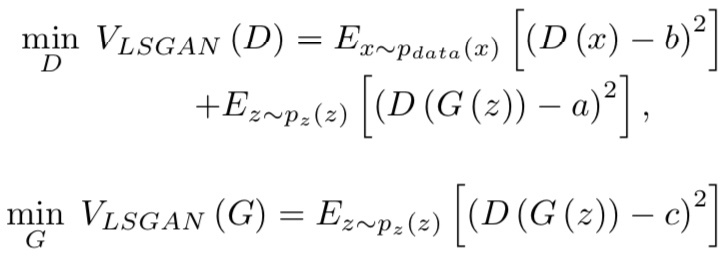 - Hyper-parameter a, b, c를 추가하여 vanishing gradient 문제를 해결하는 손실함수를 Discriminator / Generator 학습 과정에 사용하는 모델입니다.