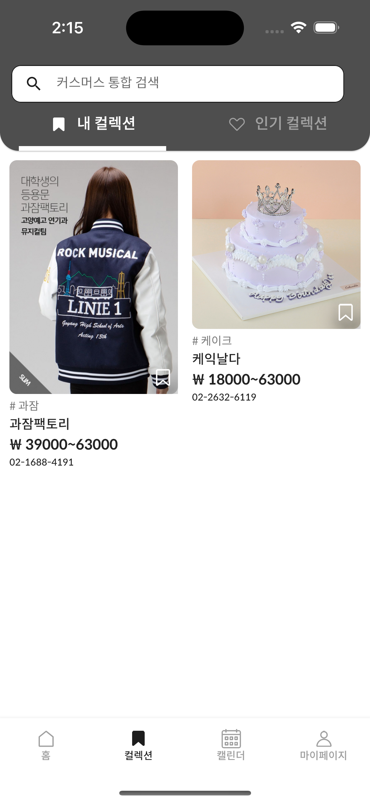 아래처럼 TabBarView 위젯의 자식들로 CollectionMine과 CollectionRecommended을 두고, 터치 슬라이드를 통해 탭을 화면 전환하고 싶은 상황입니다. TabBarView는 DefaultTabController 부모로 감싸 별도로 tabController를 구성할 필요 없이 TabBar와 연결하였습니다.